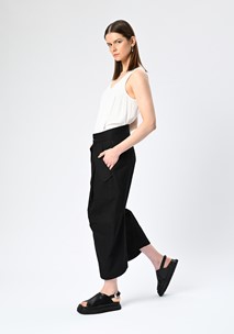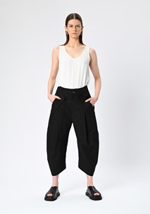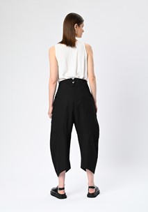 Pair the Apex Pant with a crisp, oversized shirt tucked loosely at the front and sleek ankle boots to highlight the architectural hem, or layer with a tailored blazer for an elevated, contemporary ensemble.