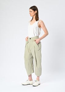 - Relaxed crotch with deep front tucks for a slouchy, fluid silhouette