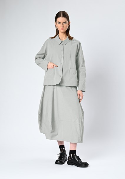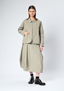 - Relaxed, semi-fitted shirt-jacket silhouette