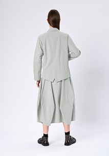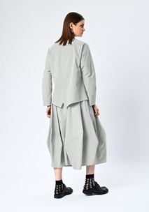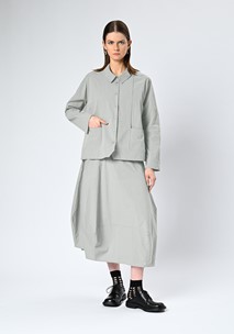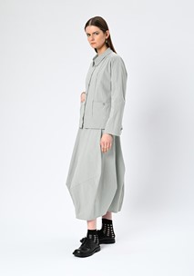 The CBD Shirt reinterprets the classic shirt-jacket hybrid with a relaxed, semi-fitted silhouette. Subtle dolman sleeve shaping allows for ease of movement, while the cut-away stepped front hem and longer back hem create a dynamic, contemporary shape. The centre back hem features an inverse "V" split, forming MM Söhn’s signature ‘tails’ effect that adds distinctive movement and architectural interest.