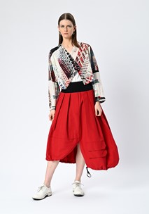 The City Life Cropped Shrug is a versatile, unstructured piece designed for modern layering. Its cropped silhouette and relaxed shape allow effortless drape, while an asymmetric front closure with three sets of press studs adds sculptural interest and customizable styling. Double-neatened hems and a back neck finished with facing binding ensure clean, refined detailing, while the centre back French seam reinforces its architectural lines.