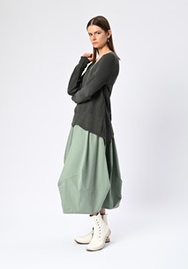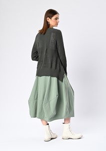 Style with slim black trousers for a refined silhouette that highlights the jumper’s volume, or layer over wide-leg pants for a bold, textural play on proportions. The oblique neckline invites subtle accessorising—think a single sculptural earring or layered fine chains for contrast.