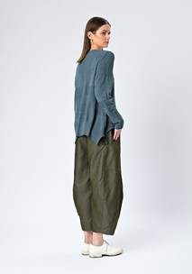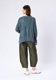 Designed with a stepped hemline that falls longer at the back, the jumper reveals thoughtful shaping at the side seams for added depth and balance. Set-in sleeves bring a clean, tailored edge to the otherwise textural design, making this piece versatile enough to anchor everyday looks while maintaining a distinct, artful character.