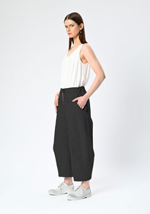 Practical elements elevate the style even further: deep inset pockets that contour from front to back, an exposed front zipper with hand-sewn press studs, and an elasticated back waistband that ensures comfort without sacrificing structure. Finished with a flap pocket at the back, this Melbourne-made piece is a versatile wardrobe investment—crafted for both everyday ease and directional dressing.