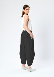 A sculptural re-imagining of everyday tailoring, the Downtown Contour Leg Pant by MM Sohn showcases a subtle cocoon silhouette that tapers neatly at the ankle. Carefully placed curved panel seams enhance its architectural shape, while top stitch detailing underscores the design’s precision and craftsmanship. Functional yet refined, these pants strike the perfect balance between utility and modern form.