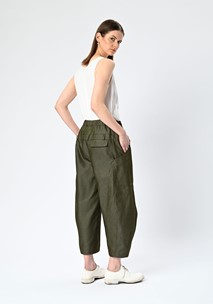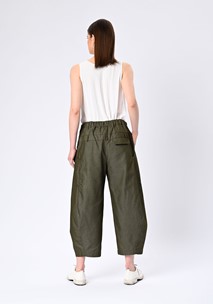 Practical elements elevate the style even further: deep inset pockets that contour from front to back, an exposed front zipper with hand-sewn press studs, and an elasticated back waistband that ensures comfort without sacrificing structure. Finished with a flap pocket at the back, this Melbourne-made piece is a versatile wardrobe investment—crafted for both everyday ease and directional dressing.