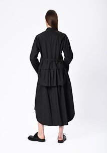 At the back, adjustable shaping through a belt and D-ring adds versatility, allowing you to wear it cinched for definition or loose for a more relaxed drape. Welt pockets at the front provide function without disrupting the clean finish, while a CB French seam and raw-edged back hem nod to MM Söhn’s signature balance of precision and deconstruction. The folded tuck detailing at the peplum completes the design with subtle texture and dimension.