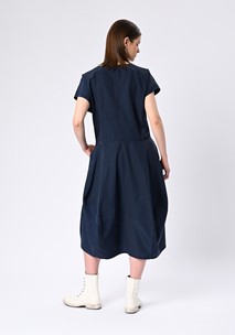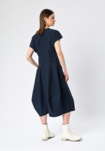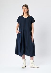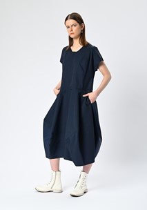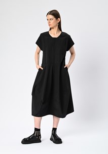 Innovative darting at the hem creates a three-dimensional form in the lower dress, adding movement and visual intrigue. Falling to a mid-calf length, the Metropolis Dimensional Dress is a statement piece that combines modern design with everyday wearability.