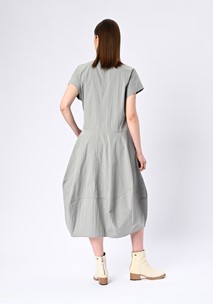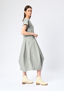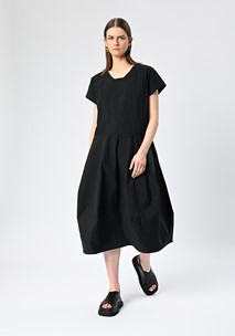 Innovative darting at the hem creates a three-dimensional form in the lower dress, adding movement and visual intrigue. Falling to a mid-calf length, the Metropolis Dimensional Dress is a statement piece that combines modern design with everyday wearability.