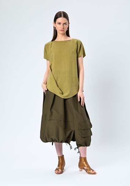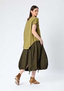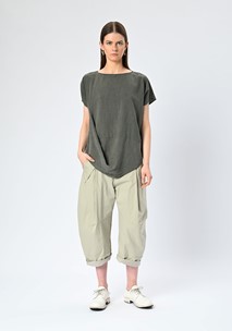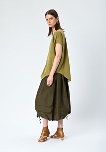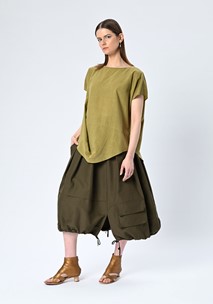 Effortlessly contemporary, the Side X Side Top is defined by a soft asymmetric drape panel on the wearer’s right front, creating fluid movement and visual interest. The rounded hem curves upwards toward the side seams, while the extended shoulder seam elegantly covers the upper arm. The back hem is slightly longer than the front, offering a modern silhouette that enhances the relaxed fit. With a subtle boat neck and versatile design, this top can also be worn reversed for a fresh perspective.
