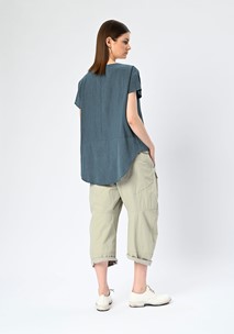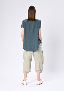 Effortlessly contemporary, the Side X Side Top is defined by a soft asymmetric drape panel on the wearer’s right front, creating fluid movement and visual interest. The rounded hem curves upwards toward the side seams, while the extended shoulder seam elegantly covers the upper arm. The back hem is slightly longer than the front, offering a modern silhouette that enhances the relaxed fit. With a subtle boat neck and versatile design, this top can also be worn reversed for a fresh perspective.